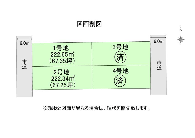 - 西側:6m(公道)1・2号地、東側:6m(公道)3・4号地